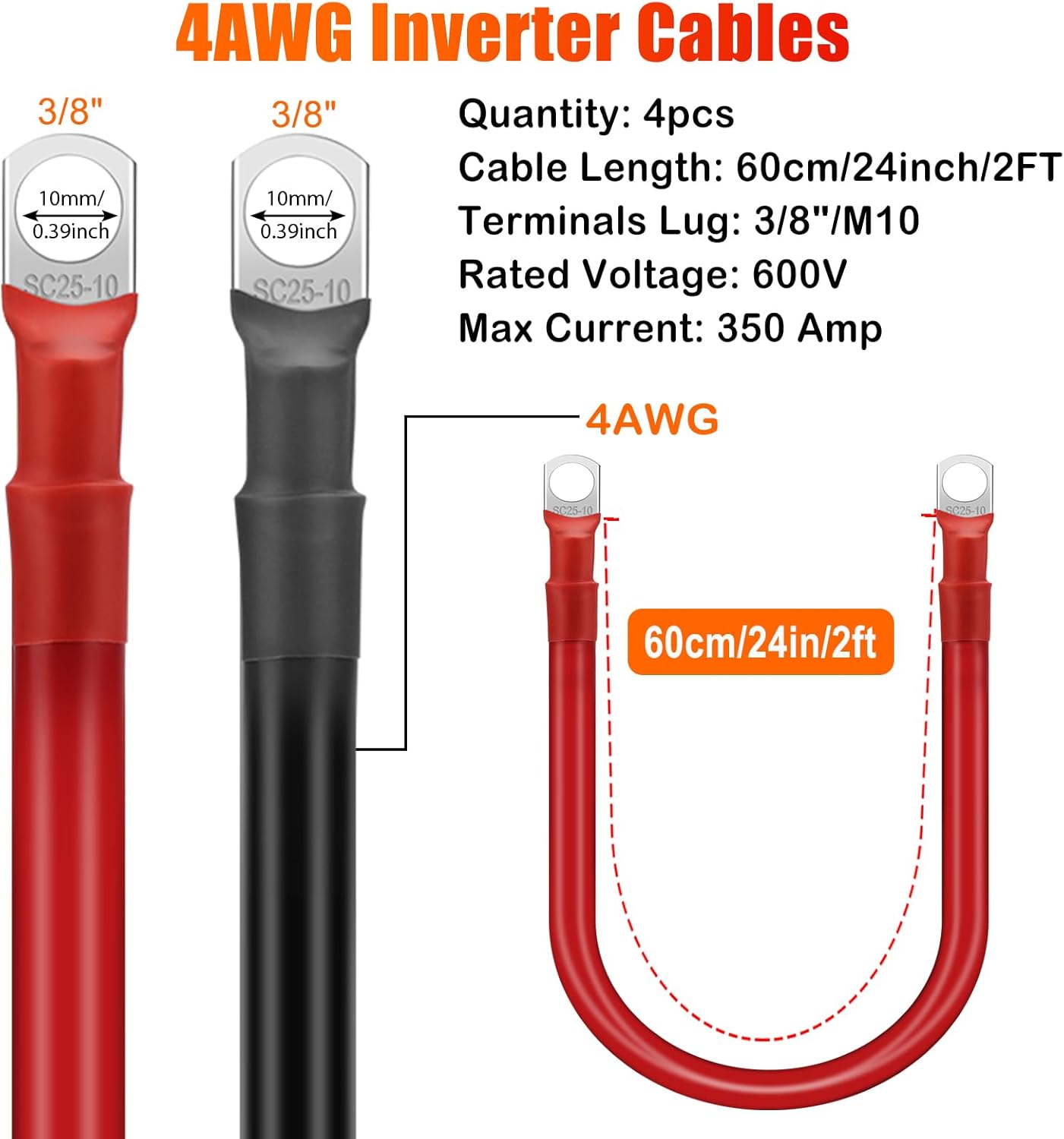 | Included Components | 4pcs 4 AWG 60CM Battery Cable |