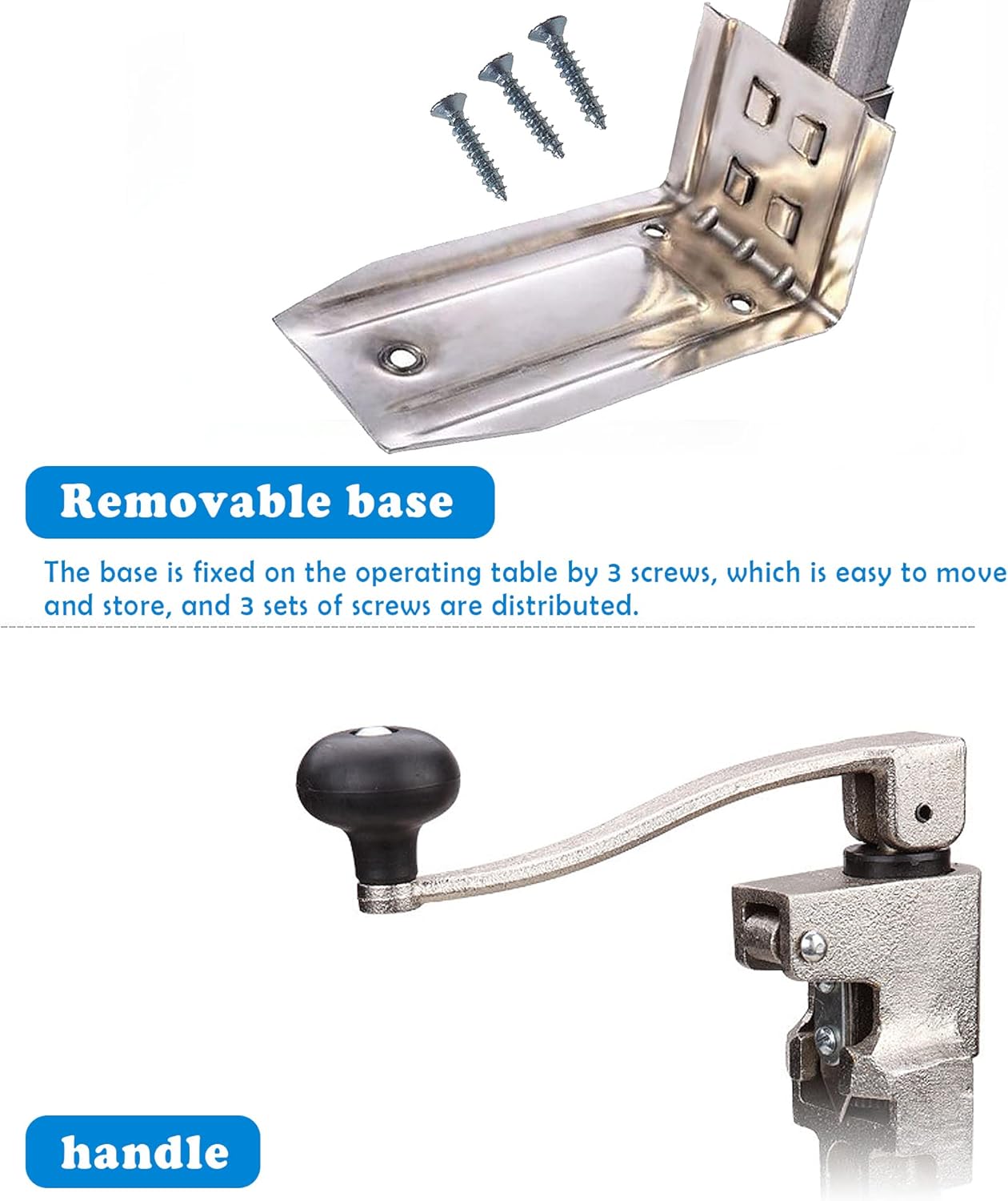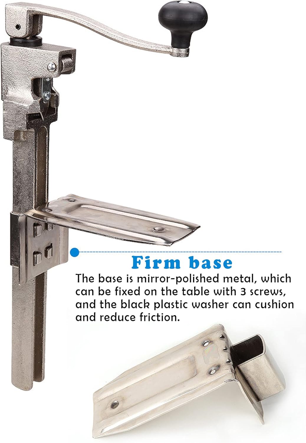 Specifications: Name: Commercial Large Desktop Rotary Can Opener Material: cast iron material, nickel-plated surface Color: silver Blade length: 6cm (removable and replaceable) Handle length: 21cm Product size: 21 47 10cm Packing size: 50 11 24cm Net weight: 3KG Gross weight: 4.5KG Package included: Can opener 1 Base 1